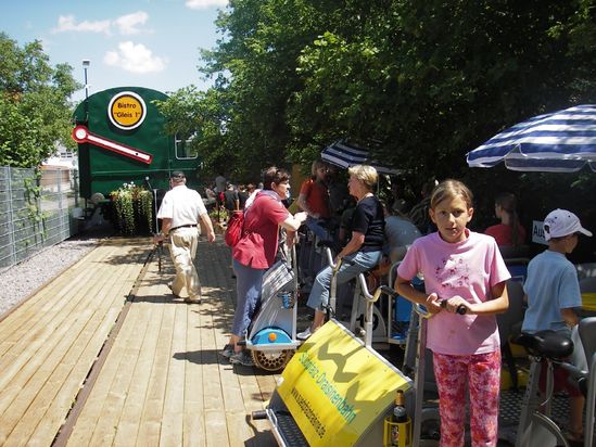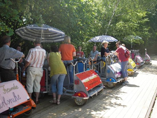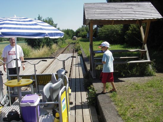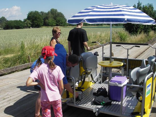Die Draisinen kurz vor der Rückfahrt in Lingenfeld