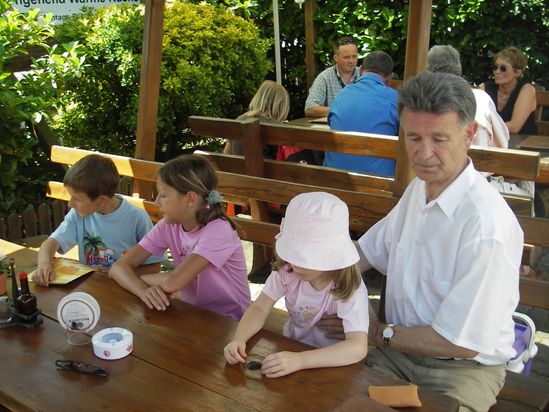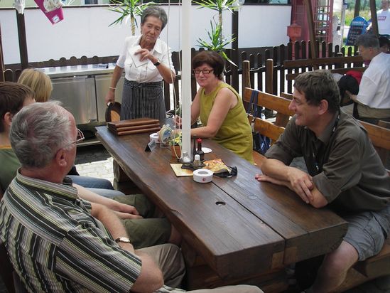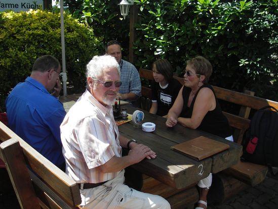 Mittagspause in der Dorfschänke Lustadt, Jürgen Benz, Isidor Gabor, Inge und Otto Carius