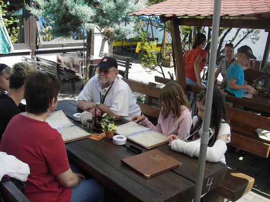 Familie Piehl und Torsten Gillmann bei der Essensauswahl